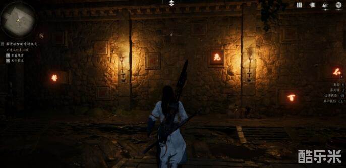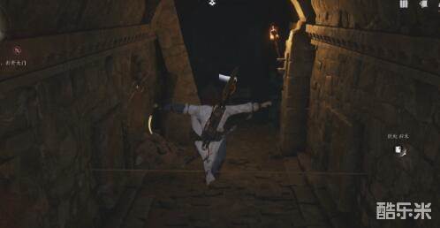 15、往右边通道继续走,出现一根线,碰到会触发墙上机关,直接轻功跳过去即可。