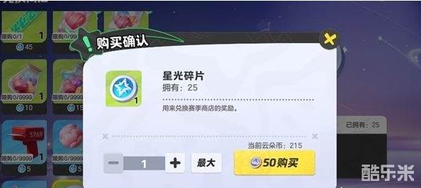 除了通过任务获得,玩家还可以使用游戏中的货币——云朵币来购买星光碎片。每50个云朵币可以兑换一个星光碎片,但每位玩家限购20个。
