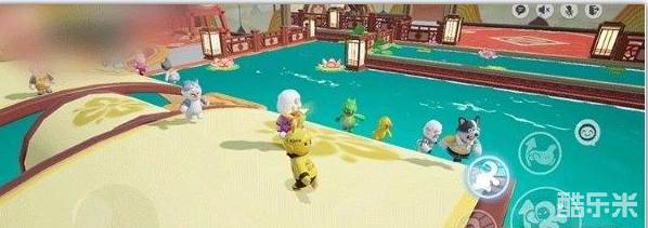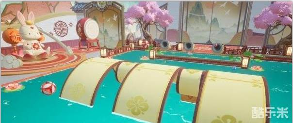 星宝们进入地图,首先看到泛起层层水波的荷塘,接着往前看,便能发现山水屏风前开阔的舞台,向左右两边看去,摆放着超大的战鼓,似在迎接勇者的到来,还有可爱的玉兔,静坐在此,使庭院增添了几分可爱。