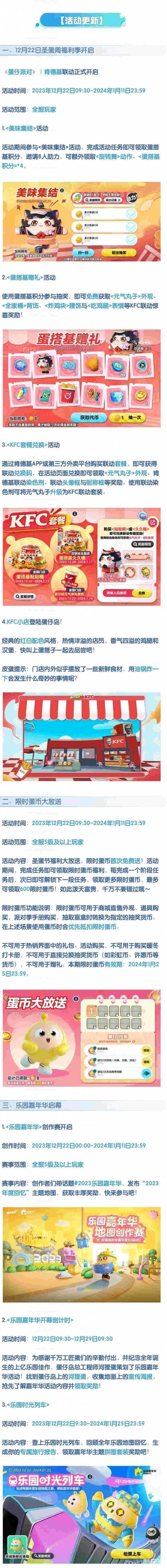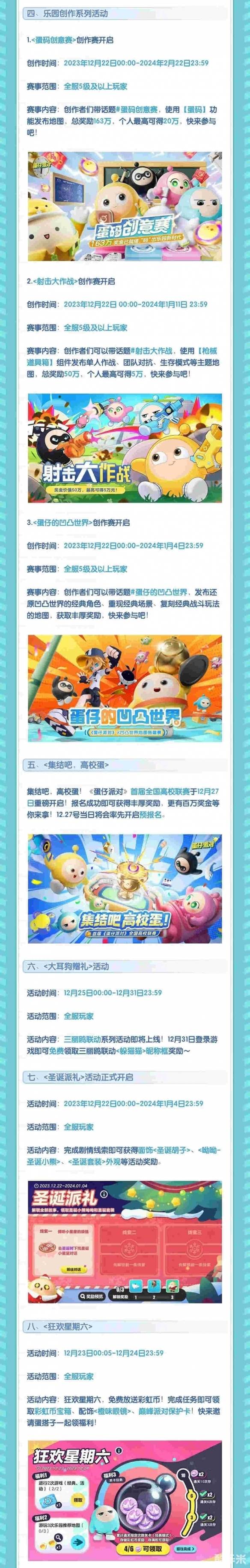 1.共建蛋仔岛更新: 来自作者@代表月亮睡不的地图<缤纷圣诞小镇>,将于12月22日登陆“共建蛋仔岛。