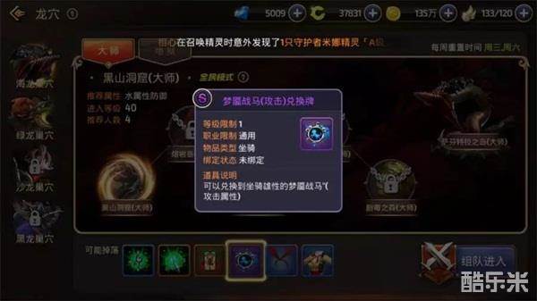 而冒险家们只要达到40级以上,即可四人组队进入大师级龙本,只要通关就可获得可用于装备进阶的材料,并且如果你人品爆发欧皇附体,还有几率获得S级梦魇战马(攻击)兑换牌哦~