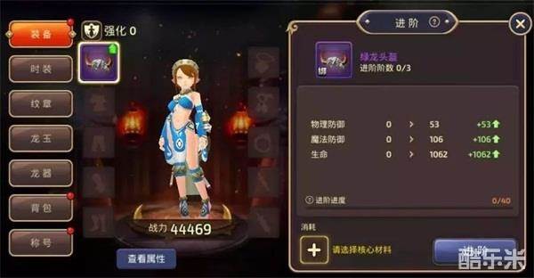 1.进阶的作用:进阶可以提升装备本身的基础属性,进阶提升进度条,当进度条满后,可以突破,第一次突破能够增加一条新的基础属性。
