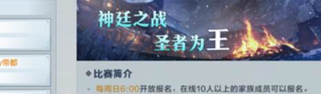 19:30可查看对阵信息,所有参与对战的家族可根据自家对阵图去准备战斗。20:00活动开放,家族成员入场参战。