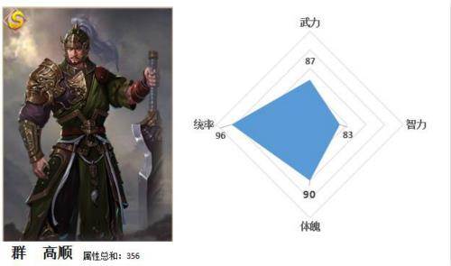 在《一骑当千2》里,高顺基础属性总和高达356,体魄、武力、智力、统率较为均衡,其中统率稍高,达96,大概是为了致敬著名的“陷阵营”,总体来看,高顺是一位全面发展的好武将。从技能上看,高顺擅长物理攻击,并且爱兵如子对士兵颇多回护,如手动技能是增加我方全体士兵大量物理攻击,4星技能是自身第一次手动伤害时,增加自身士兵大量物理攻击;5星技能是增加自身、我方吕布、我方陈宫士兵物理攻击。武将搭配时优先选择本阵营人员,会起到事半功倍的效果。