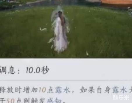 坐看云起:增加10点露水,如果自身露水大于50则触发感知。召唤不可以动的水人,水人每秒对范围内友方进行治疗,存在8s。
