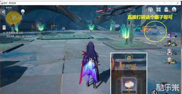 4.然后继续跟着任务指示,去下图第2个位置,直接打碎黄色圈中的罐子,即可获得任务物品,然后会被再次传送回副本初始位置交任务。