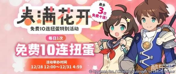 12月28日12:00起,即将举办限定活动「每日1次免费10连扭蛋」!