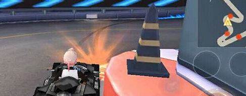 在接近终点前的弯道处玩家要在木台的里侧进行转弯相当于走里圈大大减少了大圈碰壁的危险性同时为玩家节省了时间。同时在此弯道后还有一段连续的小型弯道在第三个转弯处也可以走捷径如此将两个大弯道变成两个简单的小弯道,远远领先对手