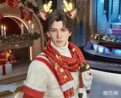 男款的时装是一个羊毛衫的设计,跟冬日慵懒舒适的氛围非常的贴合,看着就暖融融的,而搭配的麋鹿头饰更是散发金色的光芒,将整体圣诞的氛围营造得更加的浓郁了。