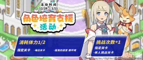 12月28日 12:00起,即将举办「角色培育支援」活动!活动期间特定关卡消耗体力减半,每天「单人挑战关卡」挑战次数增加1次!