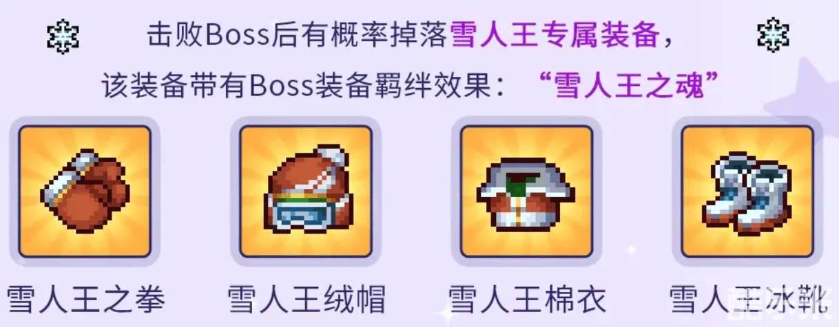 3、击败雪人王可以获得冰雪节战利品,此外还有一定概率会掉落雪人王专属装备。