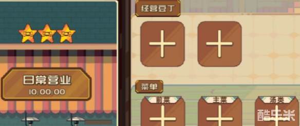 菜制作好之后就可以去经营了,经营食堂可以给玩家带来收益,不过想要开启食堂的话,需要玩家们制作前菜、主菜、甜品、汤各1道才可以,而且备货要足,要不然很快就售罄了。