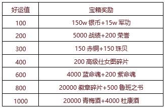 2、好运值的获取与宝箱领取状态,均会在活动期间每日0点刷新;
