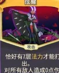 需要刚好7点法力,需要华丽上手,但是收益仅仅是一个0费5段输出。相比于匕首舞1费42,这个也就0费55,但是这牌完全浪费了一次多的法力收益,实际上完全不如匕首舞。更不要提严苛的法力限制让这牌打出率极低了。