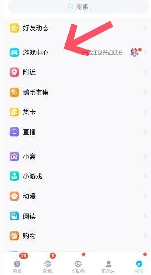 1、首先我们需要进入QQ应用,然后点击下方的动态,然后进入游戏中心。
