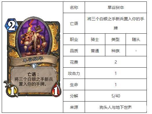 炉石传说2017年最后一个扩展包狗头人与地底世界已经正式曝光,小编也会持续给大家带来新的卡牌,那么今天给大家带来的就是旱谷狱卒的卡牌图鉴,一起来看看吧。