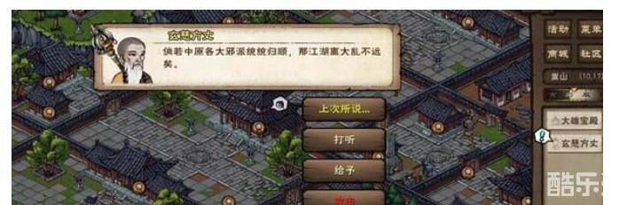 1.嵩山:等待2小时,收到来信,前往(10,17)对话玄慈方丈,再前往(7,4)多次对话玄慈方丈,最后前往长白山。