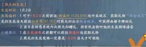 3、我们也可以在生日当天的好感系统里向燕无归赠礼就能收听他的生辰语音包。