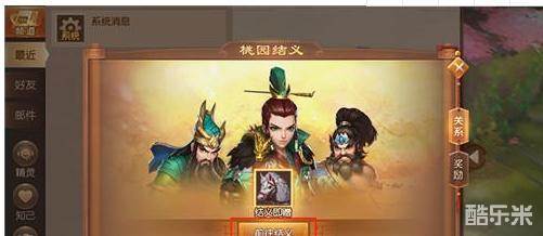 不论何时,兄弟一定都是你最坚实的靠山!当你和小伙伴等级大于33级,且互相之间的好友度大于40,就可以去找关羽进行桃园结义。私聊、一起组队战斗、赠送礼物都可以让好友度上涨。与小伙伴结义完成后,达成一定条件还可以领取对应奖励!