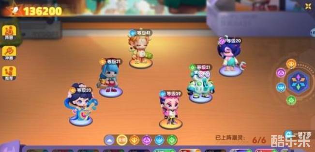 我们一次最多可以上阵六位潮灵,属性共有游侠、战士、辅助、法师、坦克、刺客六种,大家可以自己搭配,也可以根据旁边的推荐阵容培养。