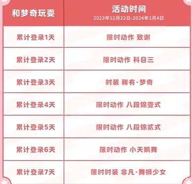 3、只需要累计登陆两天签到和梦奇玩耍活动即可获得科目三动作。