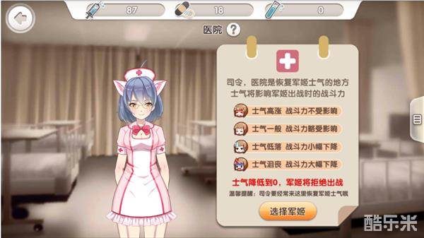 军姬进入医院后,即可通过事件缓慢恢复士气值。