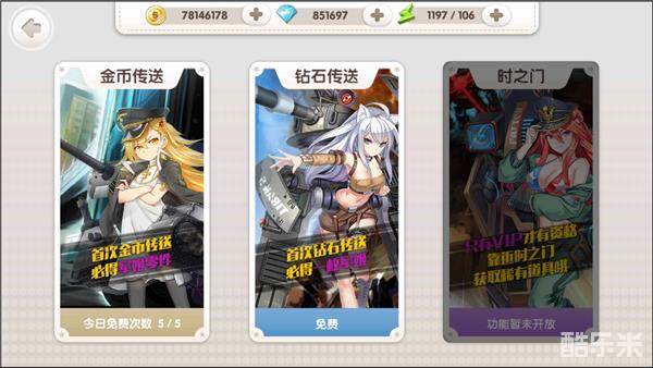 时之门 :vip11开启,vip7可见。支持单次钻石传送,出产军姬零件的概率增大,有几率获得特定英雄。