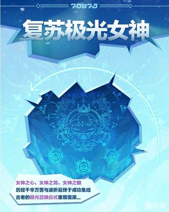 女神之心、女神之耳、女神之眼历经万千阻碍与波折后终于成功集结,古老的极光召唤仪式重现,漫天极光在天际之间绚丽绽放,极光女神典伊复苏归来。