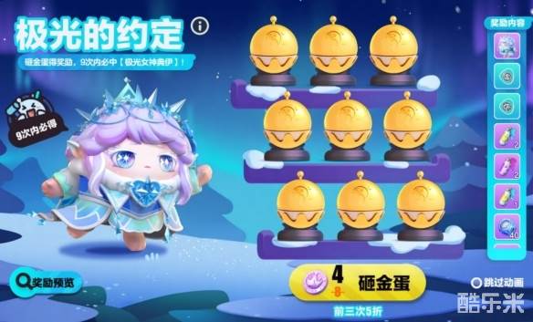 1月5日,【极光的约定】活动正式开启,砸金蛋9次内必得全新外观【极光女神典伊】,前三次更有5折优惠!