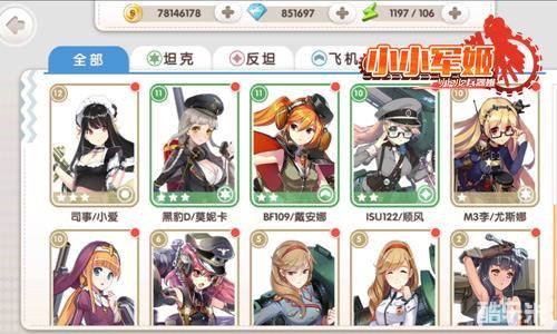 令人眼花缭乱的军姬通过兵种进行分类,总共有坦克、反坦、飞机、火炮、防空炮五种类型,通过名字或许已经有聪明的司令官发现了是相互克制的关系,所以通过合适的搭配可达成以下克上不可能任务。