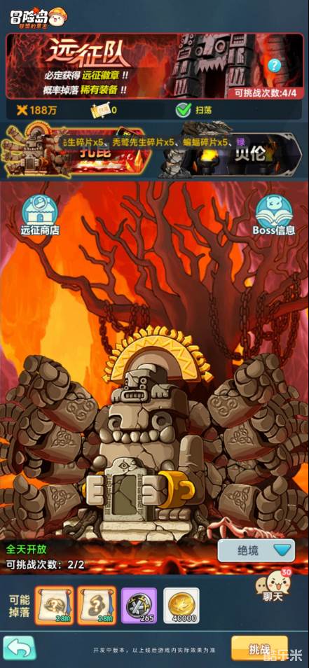 远征队里玩家一天可以挑战四次boss,成功会掉落装备和徽章奖励,其中徽章可以去商店里购买道具,而挑战失败则不会耗费挑战次数。