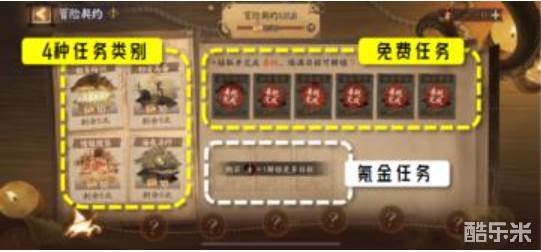 1.阴阳师冒险契约0氪每天可接取6个免费任务,每个任务的类别可单独选择,氪金可解锁额外任务但不建议。