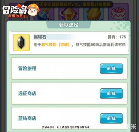 游戏内的稀有装备可以在副本中打败boss后获取。玩家还可通过装备图纸或者淡蓝色矿石直接打造出给力装备。这两样道具的获取方式也很简单,装备图纸可以在挑战完boss,获取徽章后在远征队商店免费兑换,淡蓝色矿石在主线章节和“冒险家修炼场”模式里即可轻松积累。