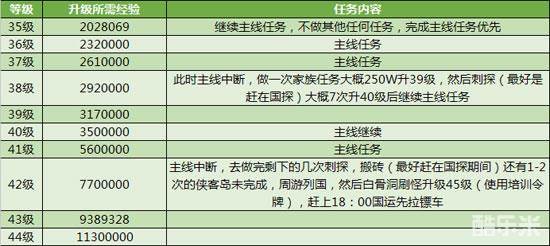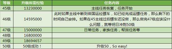 45级到了,50级还会远么?第二天日常任务,家族任务,帮派任务做起来,充分利用好各种有经验加成的时间段。50级,没问题!
