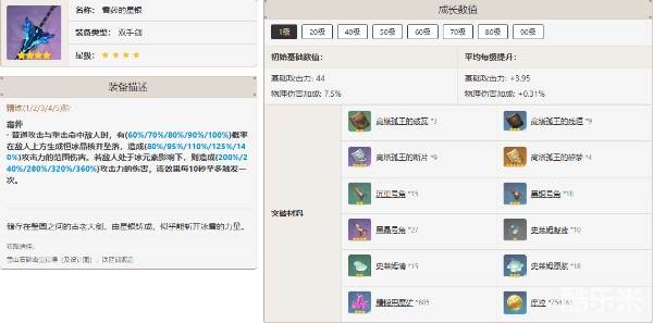 2、该武器培养到90级后,基础攻击力是510,暴击率是27.6%。
