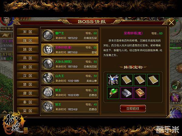 BOSS的争夺,不仅仅是土豪玩家的专属特权。只要前期等级和战力差距不是很大,记住每个BOSS的刷新时间。几个好友一起组队,在BOSS刷新前就到指定地点等候。刷新后第一时间寻找,还是有很大的概率能够获得BOSS的所有权的。这样每天都有很多的机会获得好装备、升星宝石、打造材料。而打造材料多了,极品装备自然就不成问题。