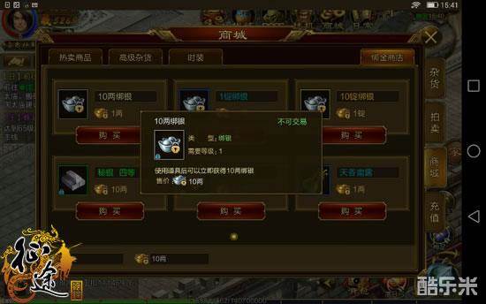 打开绑金商店栏,展示栏分为上下两栏,上一栏出售的商品是绑银,下一栏出售的商品是绑材料和药品,不同的玩家对于绑金消费需求也不同,那我们来探讨一下,您是属于哪一类呢?