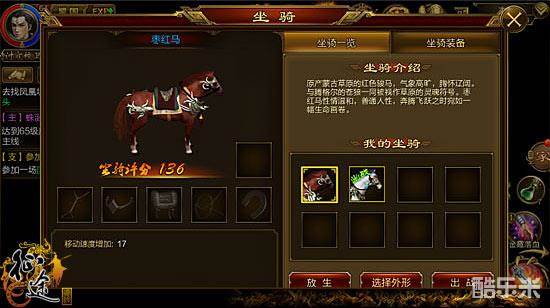 总结:这个坐骑获得难度一般,主要就是完成击杀任务获战马,在前期最好是组队前往,击杀成功率更高,使用战马会有移速的加成,另外可以马上作战哦。