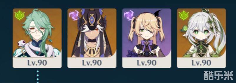 思路:相关的激化类队和绽放类队有很多,二队比较推荐妮绽队,如果没有建议使用草行久(草神+久岐忍+行秋),没草神用任意后台草替代即可。