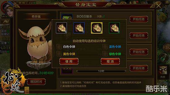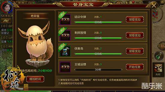 2、替身宝宝可以同时接取代练三个任务的指令,依次完成。