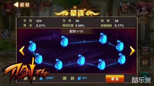 星魂的境界分为圣灵、圣魂、圣徒、圣星、圣镜、圣使、圣痕、圣环、圣者、圣羽、圣焰、圣帝十二个阶段,每个阶段又有9层星魂需要激活,且激活星魂只能按照顺序依次激活,只有当一个境界的所有星魂位置都激活后,才能激活下一境界的星魂,每一个境界的所有位置激活所消耗的星魂数量是一定的,所以要想完成全部星魂激活任务,路漫漫其修远兮。