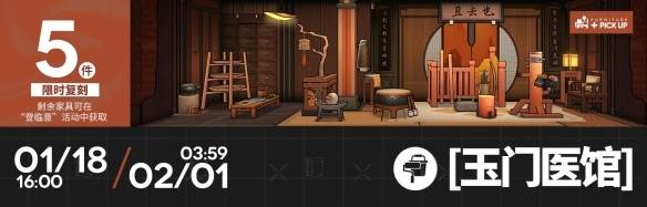 活动说明:活动期间将限时复刻【玉门医馆】主题家具