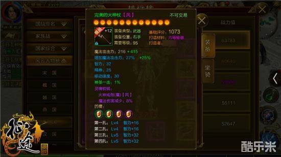 杖职业作为一个远攻职业,对于装备的要求是相当高的,本区已经诞生了几个十二星套,扇无忧却是个中翘楚,从图中我们可以看到,一身完美的12星套,攻防装备均激活了灵魂锁链,和大多数玩家不同的是,扇无忧攻装系统激活的是风属性,而防装系统激活的是雷属性,灵魂石多数已经进入五等阶段,不过部分装备还是四等五等搭配,现有战力已经高达66013,令多数玩家望尘莫及!