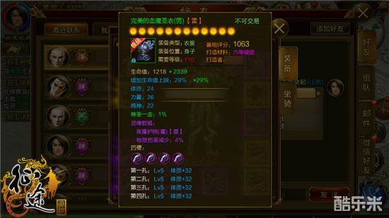 有攻必有防,我们再来看一下大神的防装,12星套的血衣,生命值加比高达2547,百分比生命值加成58%,灵魂石激活后,属性激活物理伤害减少4%,灵魂石均完成了5等改造,这件血衣,也是下足了血本!