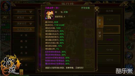 现在进入今天最后的重头戏,王者战甲!6万战力的大神已属稀缺资源,而能够身披这件黄金甲——王者战甲的玩家可真是寥寥无几,作为本区3VS3对战的胜利者,扇无忧有着自己的骄傲,本件战甲各项攻防属性加成比均达到30%,并且还有10%的速度加成,对于大神级别的玩家,装备达到瓶颈的时候,能够身披这件战甲,真可谓是如虎添翼,也堪堪称得上是王者之战甲!