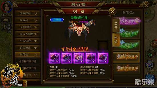 坐骑也是影响战力的重要因素,妩媚雪儿打造的的卢马资质高达1952,如此高的资质真是可遇而不可求,并且已经完成了全套装备的打造,马匹十星套也仅剩下马蹄铁没有完成十星升级,也就是说,妩媚雪儿战力还会有较大提升空间,假以时日她的战力会更加显赫。