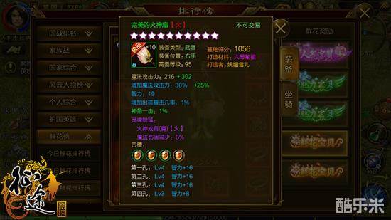 从图1中我们可以看到,妩媚雪儿的总战力是50504,而她的职业是多数女玩家都热衷的扇职业,鸿蒙初降如仙子,回眸一笑百媚生!十星套的完美装备,激活了火属性的灵魂锁链,石头以四等灵魂石为主,3等5等灵魂宝石混搭的状态上,从装备上看,还有着较大的提升空间,不过对于一个妹子玩家来说,有着如此强大的战力也是难能可贵了。