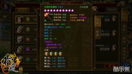 下面我们再来看茵茵专属的装备:装备第一要素武器,茵茵专属选择的是自己打造,用六等秘银打造的夜魔棍,装备评分高达1141,装备星级已经达到10星,魔法攻击力数值598,魔攻加成比55%,灵魂锁链激活魔法伤害减少5%,从数值来看,装备称得上优秀。