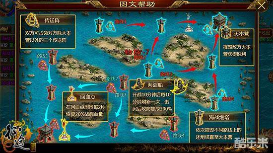 4、计算好海盗船的刷新时间和位置。占领其周围的传送点,保证能够率先占据海盗船周围的有利地形,为海盗船的争夺创造条件。