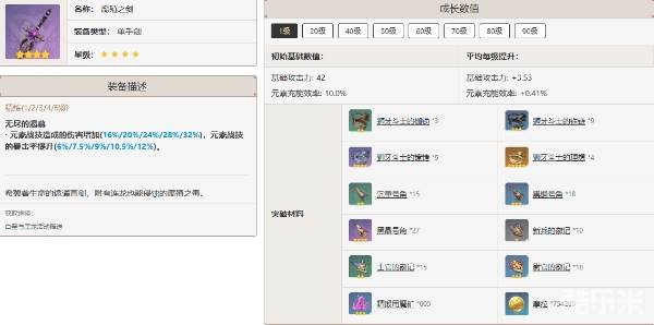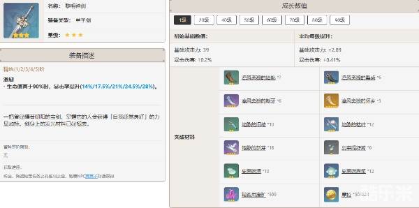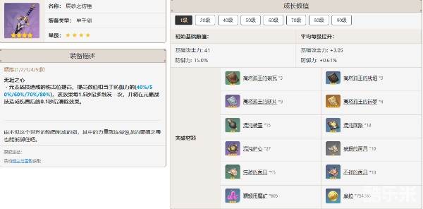 2、武器培养到90级后,基础攻击力是454,防御力是69.0%。
